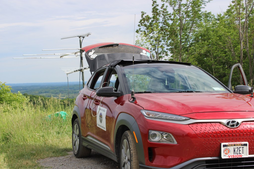 For the last few years, I’ve operated each VHF Contest exclusively as a rover station, so this year presented a unique challenge. I purchased a new car in March with fuel efficiency in mind, not amateur configurability (I knew I’d figure that out down the line). June rolled around, and my roof bars still were still backordered until September, and I still hadn’t found a good time to get a hitch receiver installed by the dealer – it’s not that I couldn’t do it myself, but given that I now drive an EV, I didn’t want to tap into an incorrect line and fry some crucial system. On top of that, there was an untimely work event that I had to be in the office for on Saturday until about 4pm, so I decided that this would make a great opportunity to run a Portable operation and try something completely different! My same setup could be used, less the IC-7100 that I would typically use for 50, 144, and 432. In theory I could just turn the power down to the 10w limit, however that’s just additional power consumption that’s unnecessary when I already have a perfectly capable QRP radio.