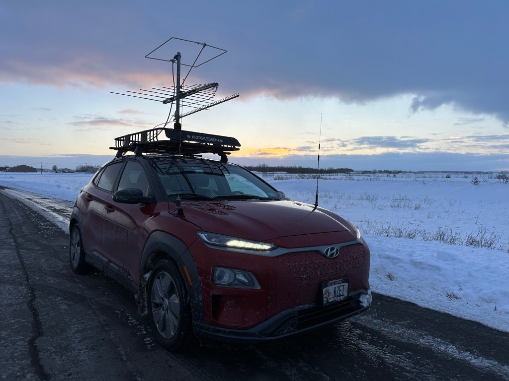Now, the reason I called this post, “Know your limit, rove within it,” goes back to a NYS gambling commission ad, “know your limit, play within it,” I considered taking a long rove, but when the temps dip below 10 degrees, EV range tends to diminish significantly. Driving an electric vehicle as a rover in the dead of January takes some getting used to – this was my second outing for a January VHF contest in this setup, and I’ve learned some lessons… no, I didn’t get held up at chargers for hours, though I did stop at my furthest point to juice up for 15 mins and grab a bottle of water. You need to know your vehicle’s limit when you’re doing something like this, or even just taking a long trip somewhere – it doesn’t matter if it’s gas or electric, you need to know what your maximum range is, and give yourself a buffer zone. I didn’t want to take a gamble, so even on the nice weather day (though still cold), I stuck within 50 miles of home.