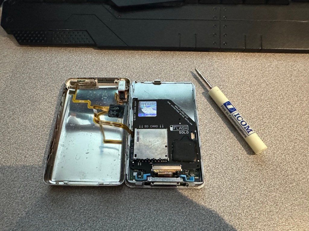 I tried numerous recovery measures as I had no desire to try and pop this thing open – I’d had an 80gb 6th Gen iPod Classic for close to 10 years before needing to replace the click wheel, and demolishing the screen in the process (that’s where the Walkman came in). After hours of attempts, it’d sync about 1/2 my library, stop, and then say that there was no music on the device. I tried side loading RockBox on it, which saw the music, but had a few issues when booting. I found a device that allows you to swap out the Hard Disk for an SD Card, this can be found at http://www.iflash.xyz. It was a breeze to install, and the hardest part of the whole thing was getting into the iPod – as I said above, this wasn’t my first rodeo.