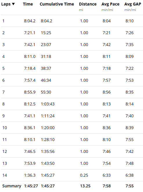Now that I’ve set my one PR, it’s time to start focusing on the next, the full Marathon, where I’ve been stuck. I’d been hovering at 4:15 up until last year, when I was finally able to kick it down to 4:07, but based on finally hitting 1:45 in the Half, it’s time to break that 4 Hour Barrier. I have a realistic goal of 3:59:59… just get me across, but a stretch goal of 3:45, which is an 8:35 min/mi pace. Knowing I can average Sub-8 for 13 Miles, this absolutely feels doable, but as long as I keep training it the next few weeks.